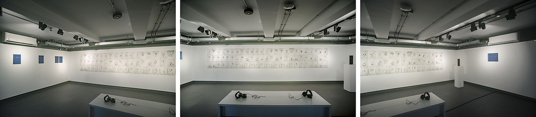 The book measures at: 330mm (H)*230mm(W)*65mm(D). Each print is 297mm (H)*210mm. In an exhibition, the work can be shown as a photo-audio installation, as seen above. The video here attempts to present the book as a film piece. With soundscape composed by Monty Adkins.